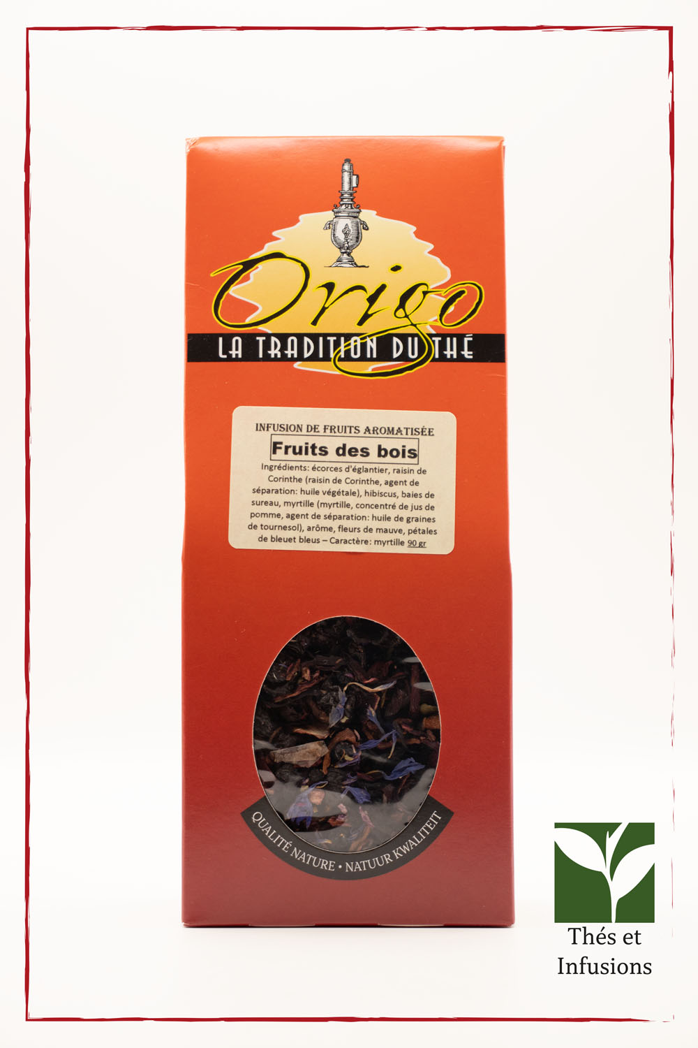 Une infusion composée de fruits et de plantes, cette boisson se consomme glacée ou chaude selon vos envies et la saison. Voici la liste des ingrédients : Ecorces d’églantier, hibiscus, raisins de Corinthe (Raisins de Corinthe, agent de séparation: huile végétale), baies de sureau, fleurs de bleuets, myrtille (myrtille, agent de séparation: huile de graines de tournesol), arôme, fleurs de mauve, pétales de bleuet bleus.